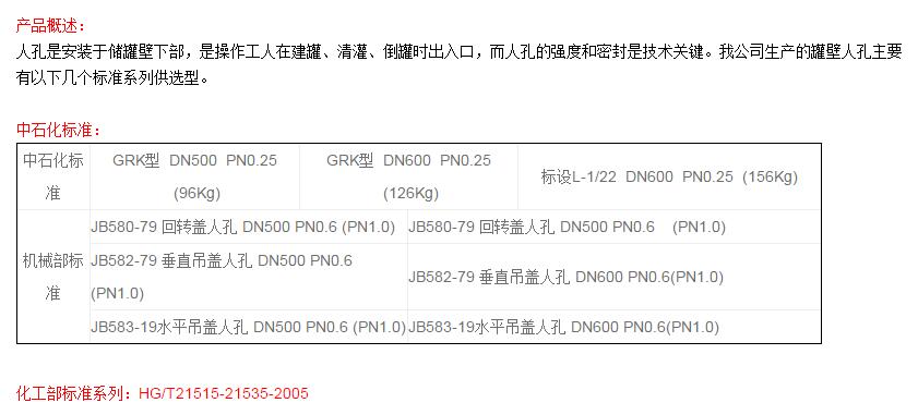 注:由于化工部標(biāo)準(zhǔn)人孔的筒節(jié)都比較薄,一般都要加厚,在選型、訂貨是注明。