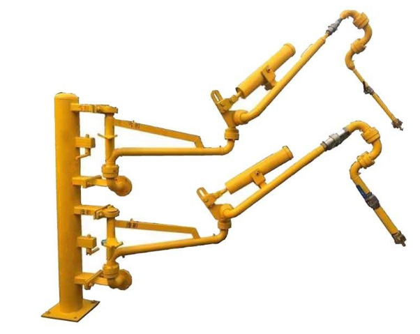 汽車鶴管是采用旋轉(zhuǎn)接頭與剛性管道及彎頭連接起來,以實(shí)現(xiàn)在汽車槽車與棧橋上儲運(yùn)管線之間傳輸液體介質(zhì)的活動設(shè)備,以取代老式的軟管連接,具有很高的安全性,靈活性及長壽命等特點(diǎn)。